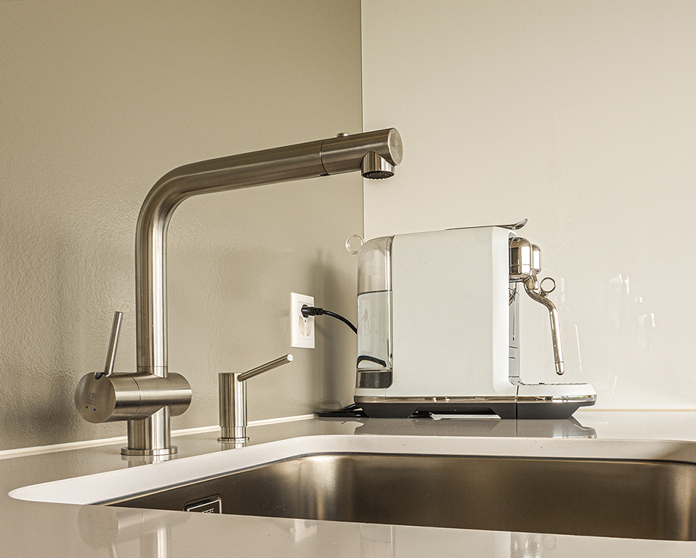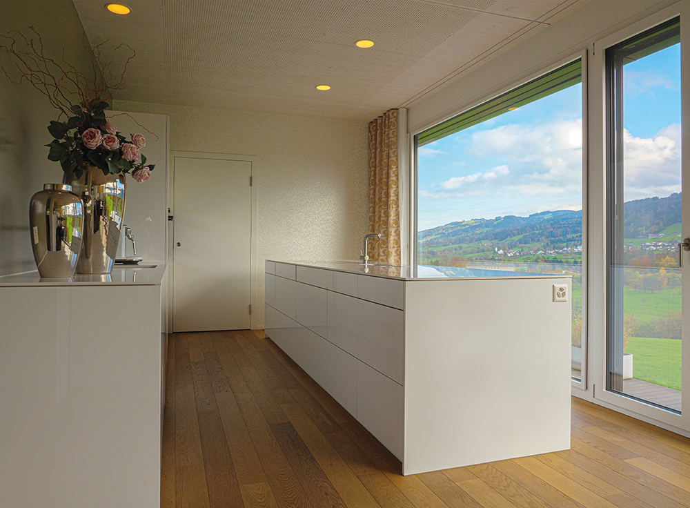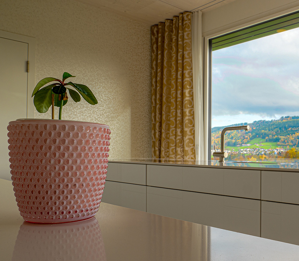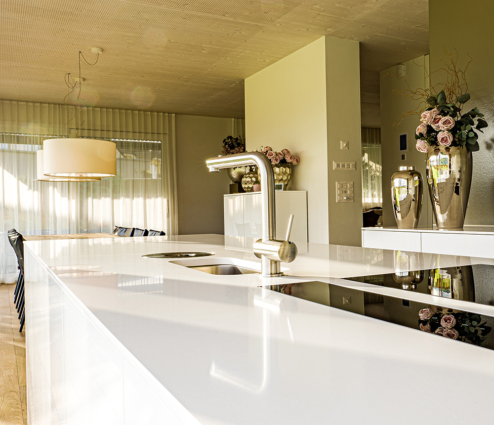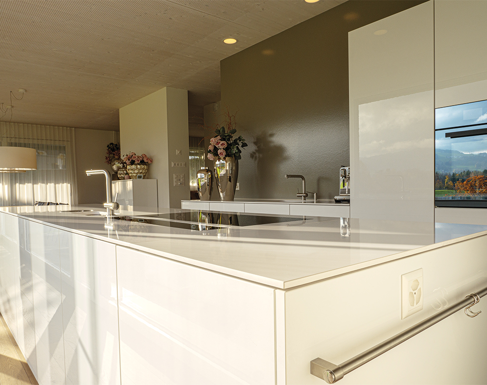 weisser Hochglanz Acryl mit Silestone Abdeckung